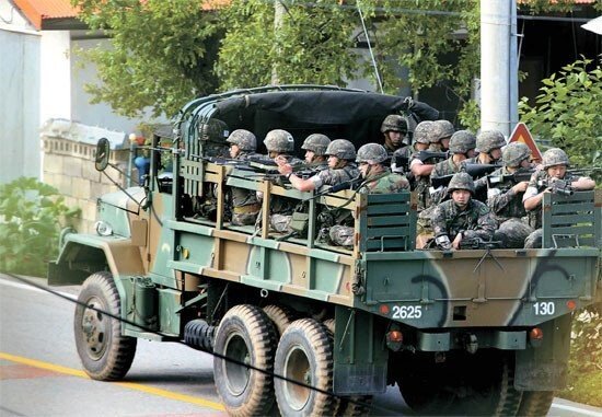 "OO 상병님, 비 오는 날 오픈카가 지나가지 말입니다." "그러게. 우리랑 똑같네."