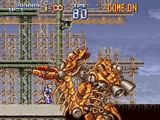 처음엔 탱크인 메탈 슬러그가 주인공이라 탑승 상태로 플레이 하는 설정이었다는데 이게 그 흔적이구만