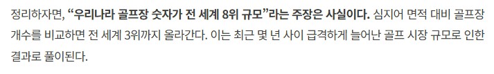 우라나라의 골프장은 1/10 이하로 없애는 게 맞다고 봄. 땅도 좁은데 이런 건 아니지 않나