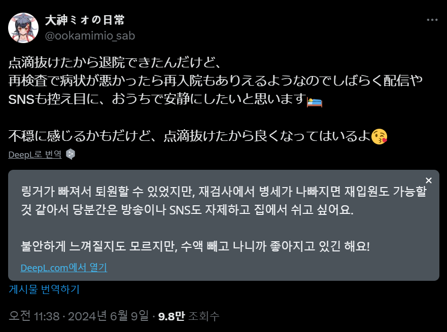 퇴원은 했지만 완전 다 좋아진건 아니라 방송은 더 쉰다고 했음