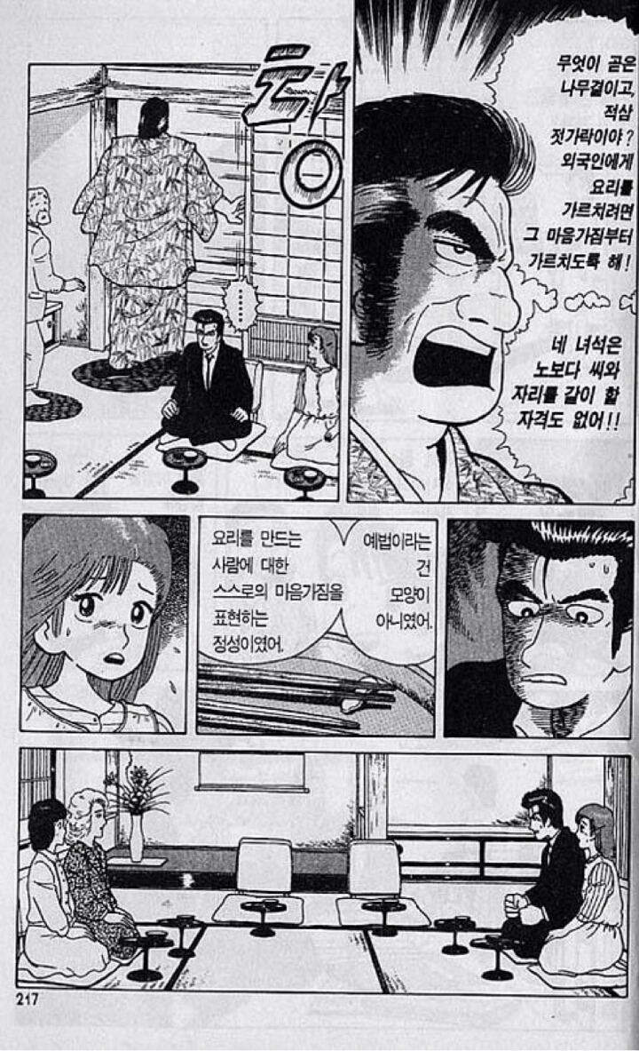 저 만화 자체가 저렇자너ㅋㅋㅋ 손님들 다 앉혀놓고 개꼽주고 문 쎄게 열고 나가는 장면도 있는걸ㅋㅋ