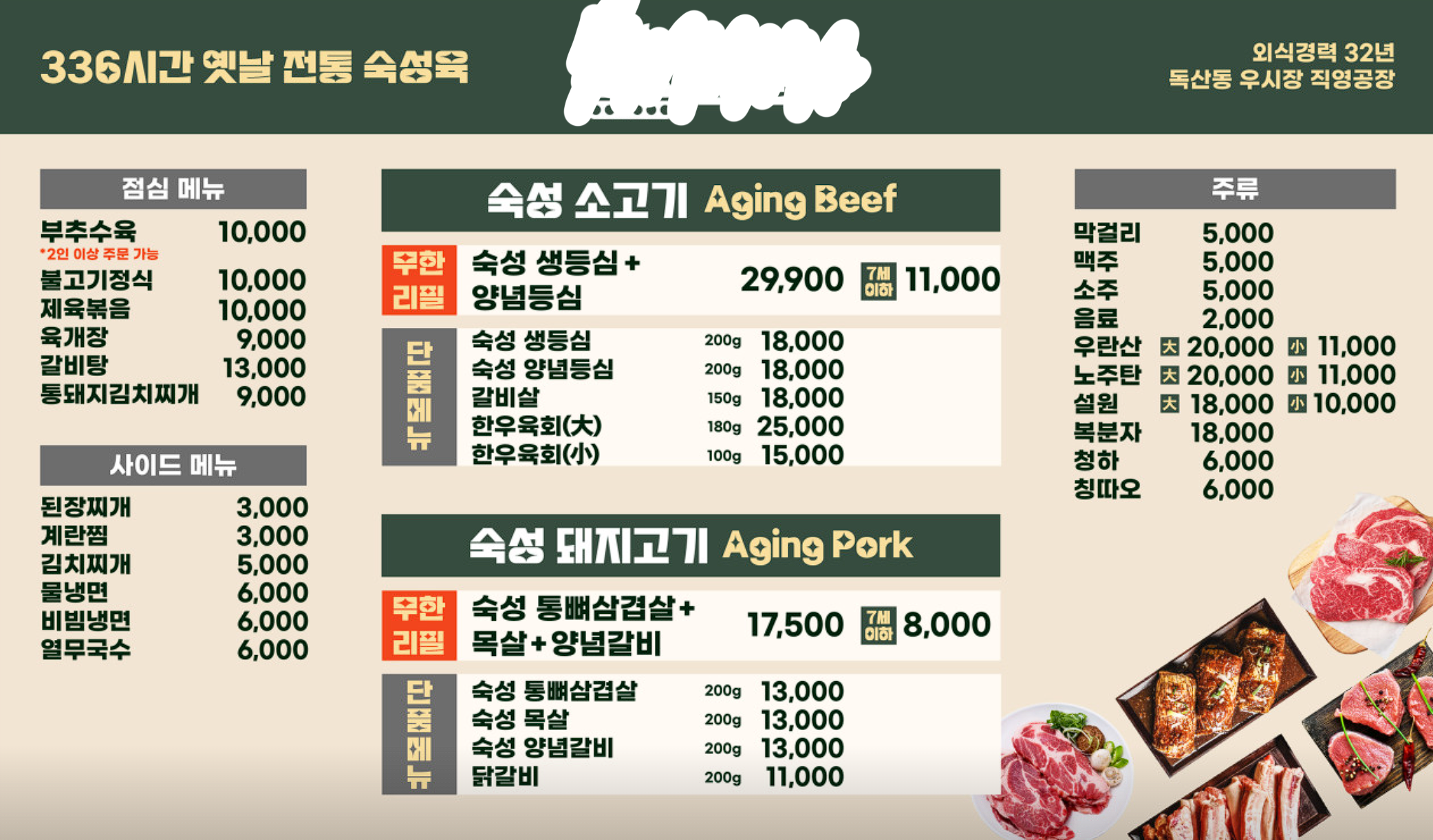 한국도 고기류 무한리필집은 단품 가격도 같이 나와있어요 | 24.09.07 15:31 | | |