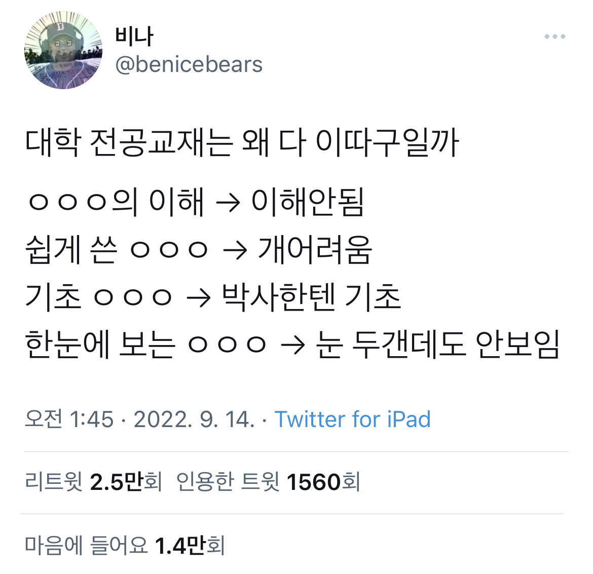 교수님 수업 하나면 학생들 다 이해하지 근데 수업 존나 많단말이야 ㅋㅋ | 24.11.12 16:44 | | |