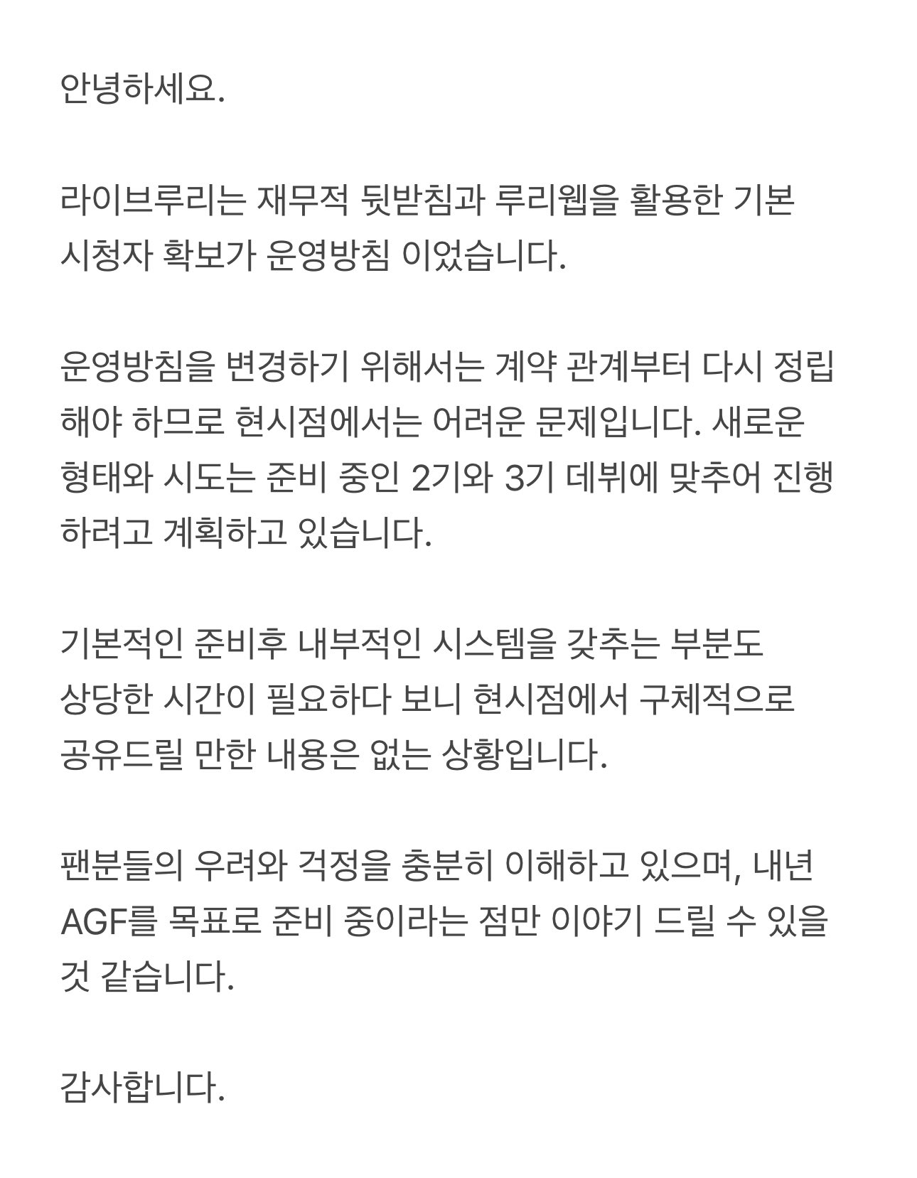 그래도 지속운용을 한다고 밝힌게 다행이네 의지없으면 답변조차 안했을텐데 다행이다 진짜