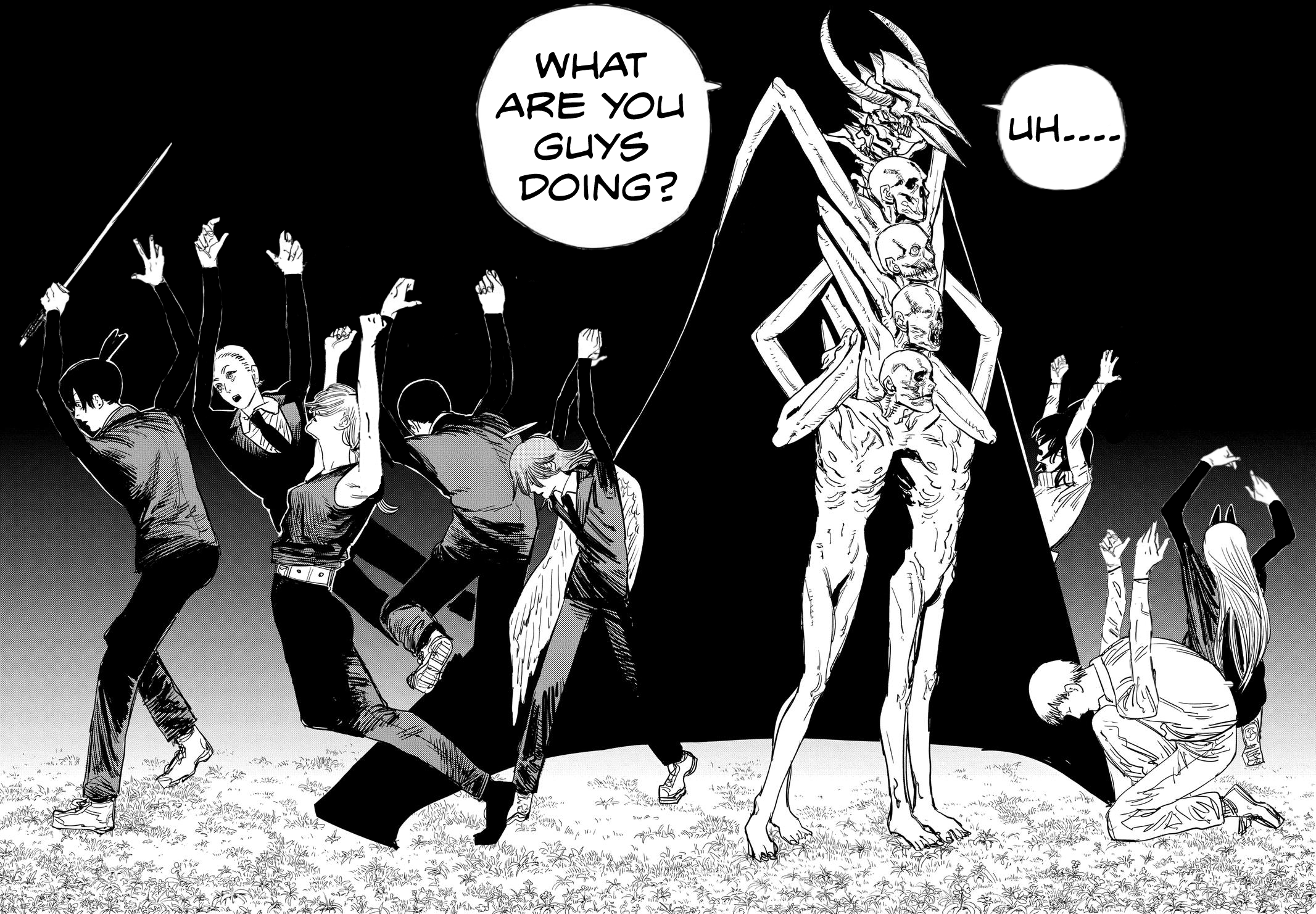 저 총의 악마가 1부에서 최종보스고 얘를 이겨야 인류의 평화가 온다고 여겼는데 걔를 '따위'라고 하는 순간이라 독자들에게 충격을 줌.