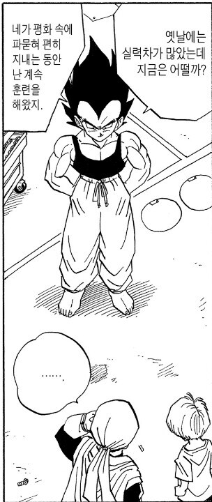 베지터가 너무 놀지 말고 수련 좀 하라고 격려하고 있는 거임?