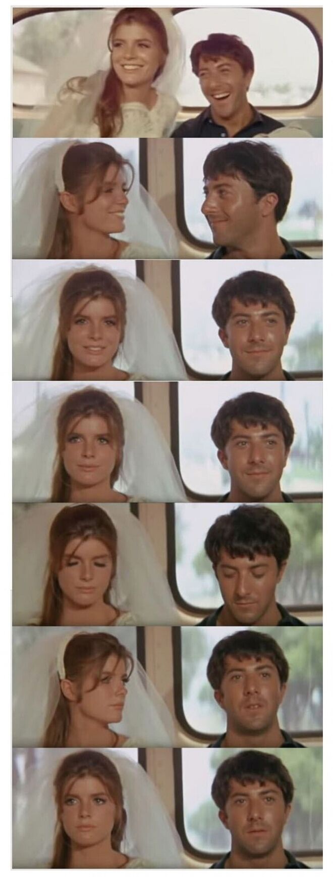 근데 현실 생각하면 저런 장면이 나올법해서. tmi. 저 장면은 여자 선생 결혼식에서 학생이었던 남자가 결혼식장에 난입해서 신부를 데리고 나가 택시에 타고 떠나는장면 좋아하는 사이라서 빼내올땐 신났지만, 택시타고 가다보면 현실 생각에 찹찹해지는걸 잘 표현(?) 했다고 봅니다. 참고로 여기서 사이먼앤 가펑클을 sound of silence 가 OST 나오며 그 가사도 잘 어울린다고 생각합니다. | 24.12.16 08:41 | | |