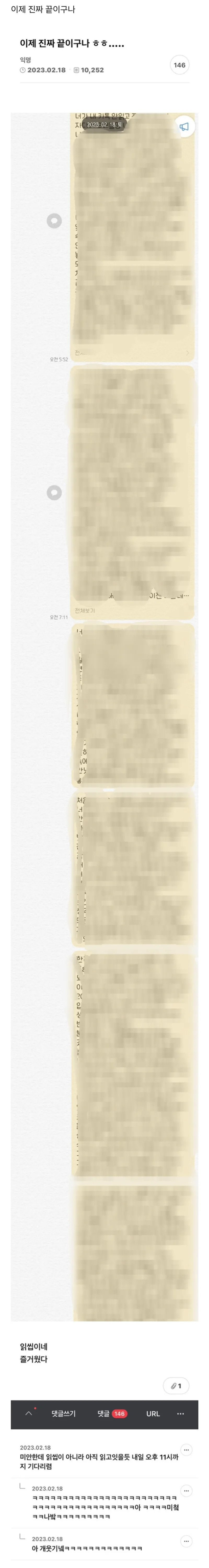 장문 카톡은 꼭 이 ㅁㅊㄴ놈들이 띄어쓰기도 안 함. 심지어 저 읽기 힘드라고 문단을 안 띄움ㅋㅋㅋ 책이면 몰라도 웹에서 보는 건 엔터쳐서 가독 챙겨야 하는데 저리 소설 쓰고 읽기를 바람 맞춤법도 틀리면 화룡점정임