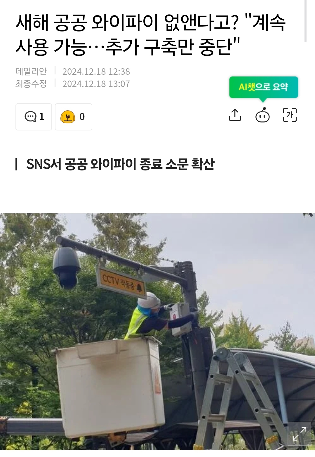 "내년 정부 예산안에서 공공장소 무료 와이파이 구축 사업비가 전액 삭감" 아니였음? 그래서 철거는 안하는데 유지보수 비용은 각 지자체에서 알아서 해라 라고 알고있었는뎅
