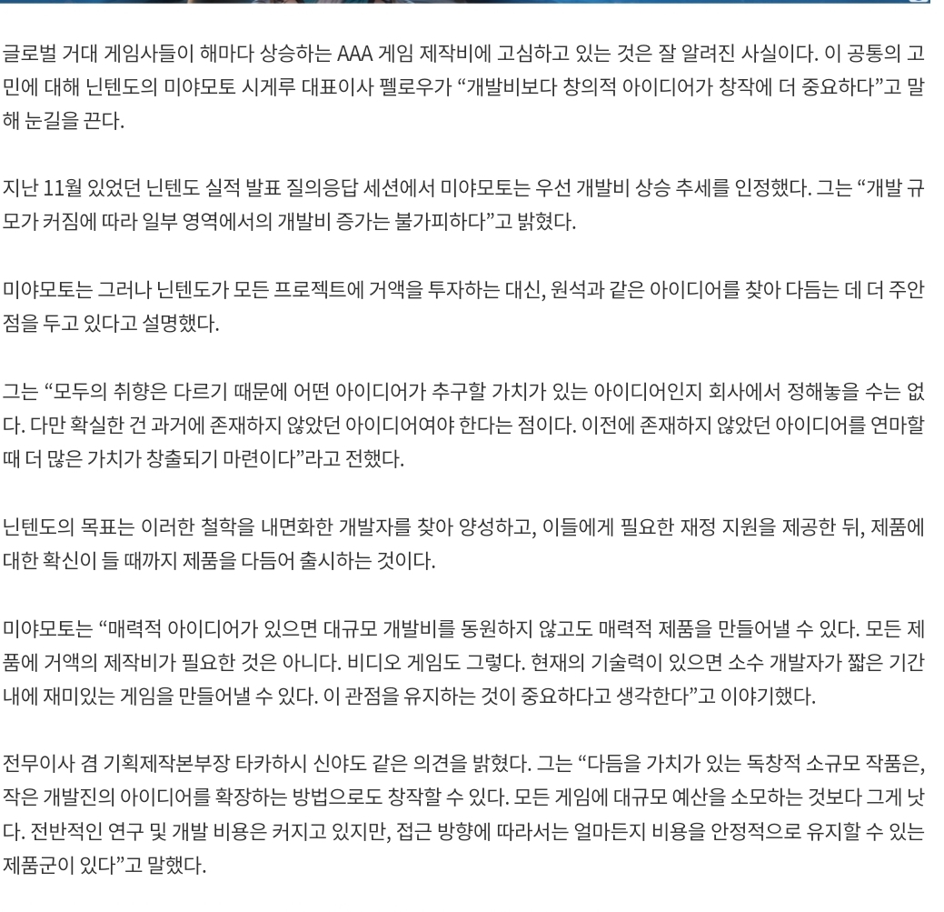 그러니까 저 발언은 닌텐도니까 당당하게 할 수 있는 발언이기도 함