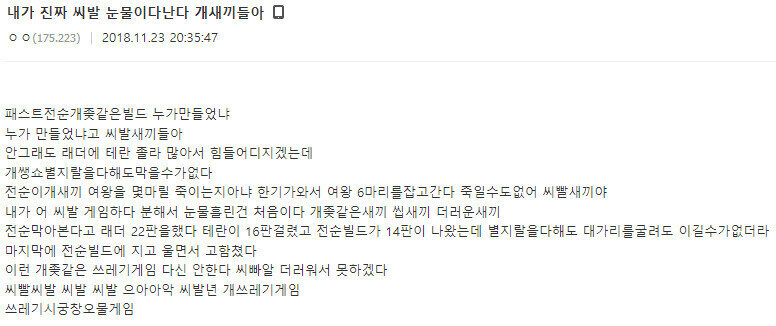 저거 요새 완전 사장분위기던데. 왜사장됐지? 심지어 여왕이 비싸진 이번패치에서도 쓰는족족 지는거 밖에 못봤는데.