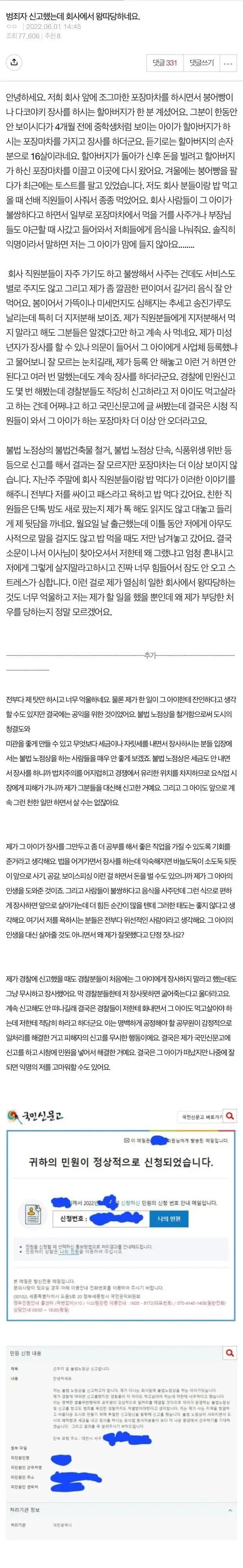 3. 경찰신고로 치워버리려고 했지만 되려 경찰들한테 아이가 먹고 살려고 하는건데
