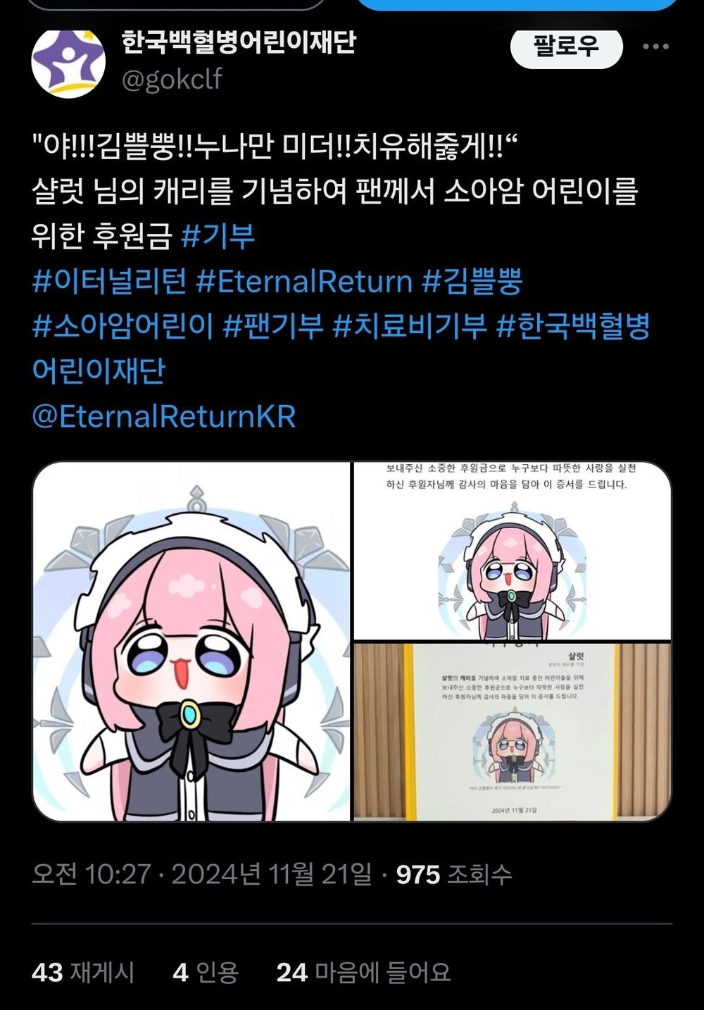 솔직히 이번 사건으로 모든 기부 기피하는건 음식점 유명한 곳에서 벌레 나왔다고 모든 음식점 기피하는거나 다름 없다 생각함 설령 내가 한 기부 중에 절반만 진짜 피해자에게 간다 해고 나는 그 절반을 위해 기부할거야