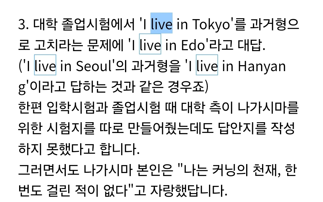우리나라로 치면 '나는 서울에 산다'를 과거형으로 I live in Hanyang