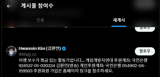 앞으로는 매니저 대신 본인이 직접 나선다는 글의 리트윗 인원 中