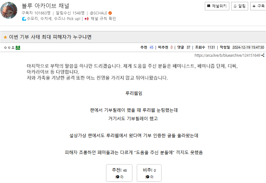 활동가라는 작자가 자기 사상이나 관념을 써놓지도 않고 계좌 박아놓은게 참 대단하다 싶네 | 24.12.23 17:42 | | |