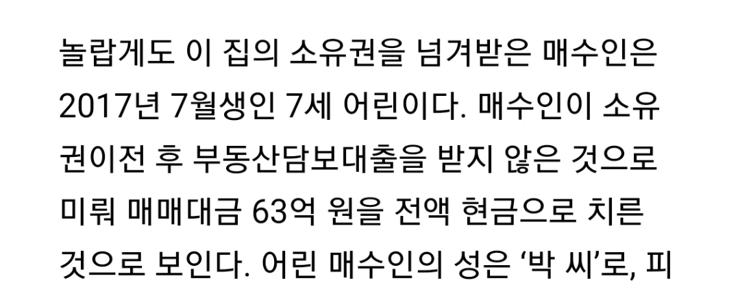2017년 7월 출생, 박씨, 전액 현금 이 정도 정보면 맘먹고 찾으면 특정할 수 있는거 아닌가