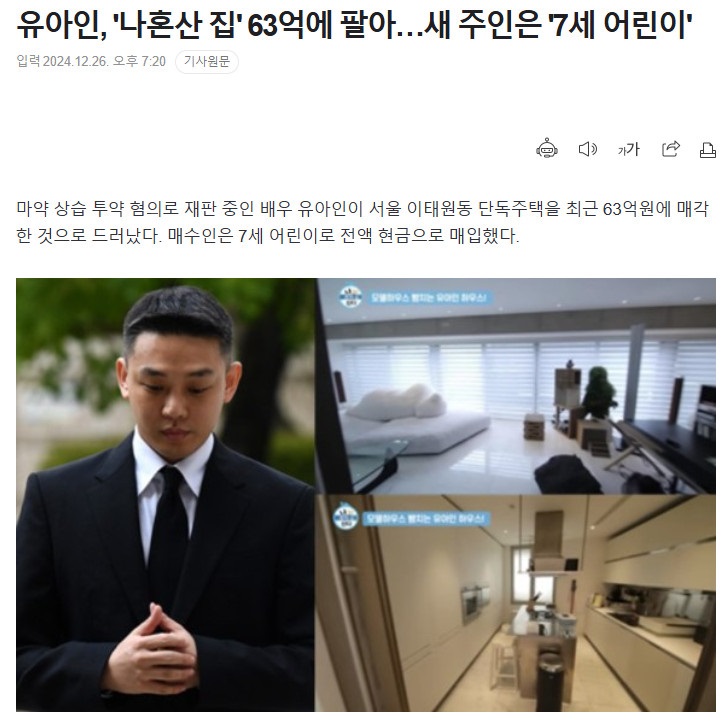 이미 기사에 누군지 다떴고 재벌이나 대기업 아님 중소기업 의류브랜드 부부 자식임 | 24.12.26 23:38 | | |
