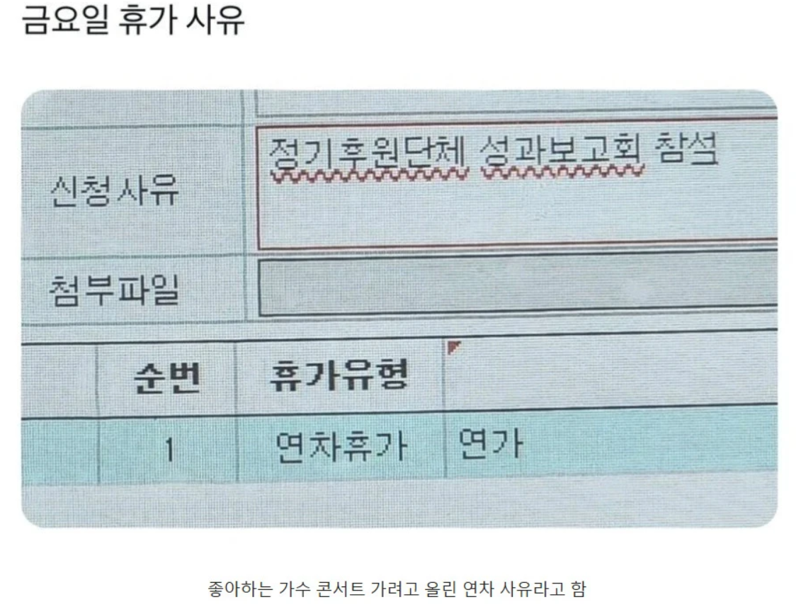 그냥 개인사유 쓰고 가면되는데 연자쓰는걸로 거짓말까지 하게 만드냐