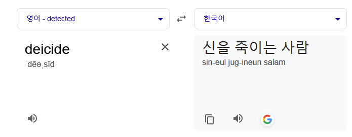 갓데스라고 하기엔 너무 영어문법상 이상해서 난 이쪽으론 생각도 안했네 갓 킬러라고 하던지 어려운 '살신자'란 영단어도 있는데, 그냥 갓데스를 고유명사로 인지하면 되겠지 뭐 그래도 고유명사로 고유명사를 설명하는 루프에는 안들어가서 뭐 괜춘