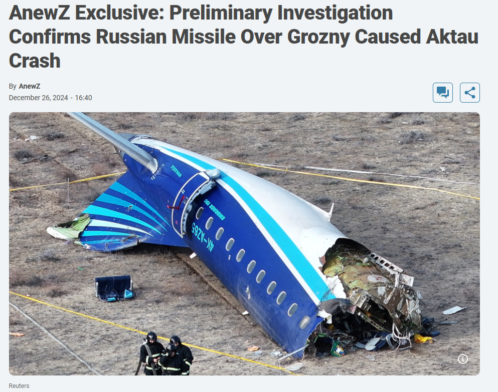 12월 25일 추락한 아제르바이잔 항공기