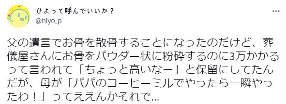 대충 커피콩 다시 넣고 돌리기를 10번 정도 반복한 다음에 유골함에 전부 넣으면 해결! | 24.12.28 16:45 | | |