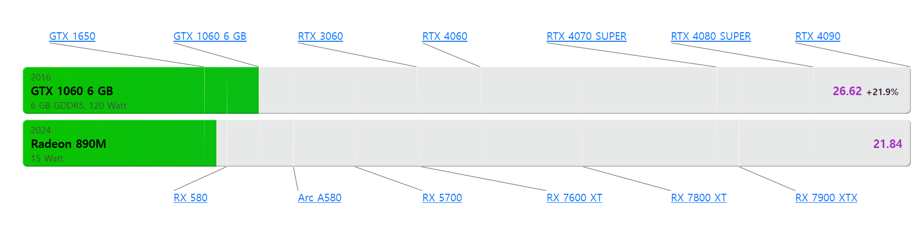 이젠 1060이면 노트북 내장 Arc 에 따이는 수준까지는 옴 ㄷㄷ