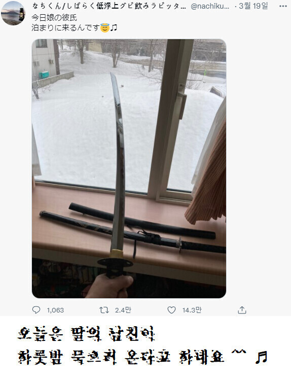 내 일본도는 집에 도착해서 처음 뽑자마자 주인 허벅지 피로 각인 의식부터 하더라고