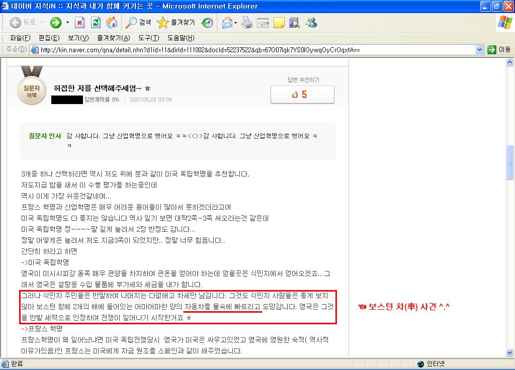 그것도 적어줘야지 새뮤얼 애덤스의 양아치적 침수차 작전에 건국의 아버지 중 하나인 벤저민 프랭클린은 성금을 모아 영국 중고차 시장에 보상하려 했으나 영국 중고차 계의 거부 프레데릭 "초롱이" 노스가 "조까"를 했던거 | 24.12.30 20:43 | | |
