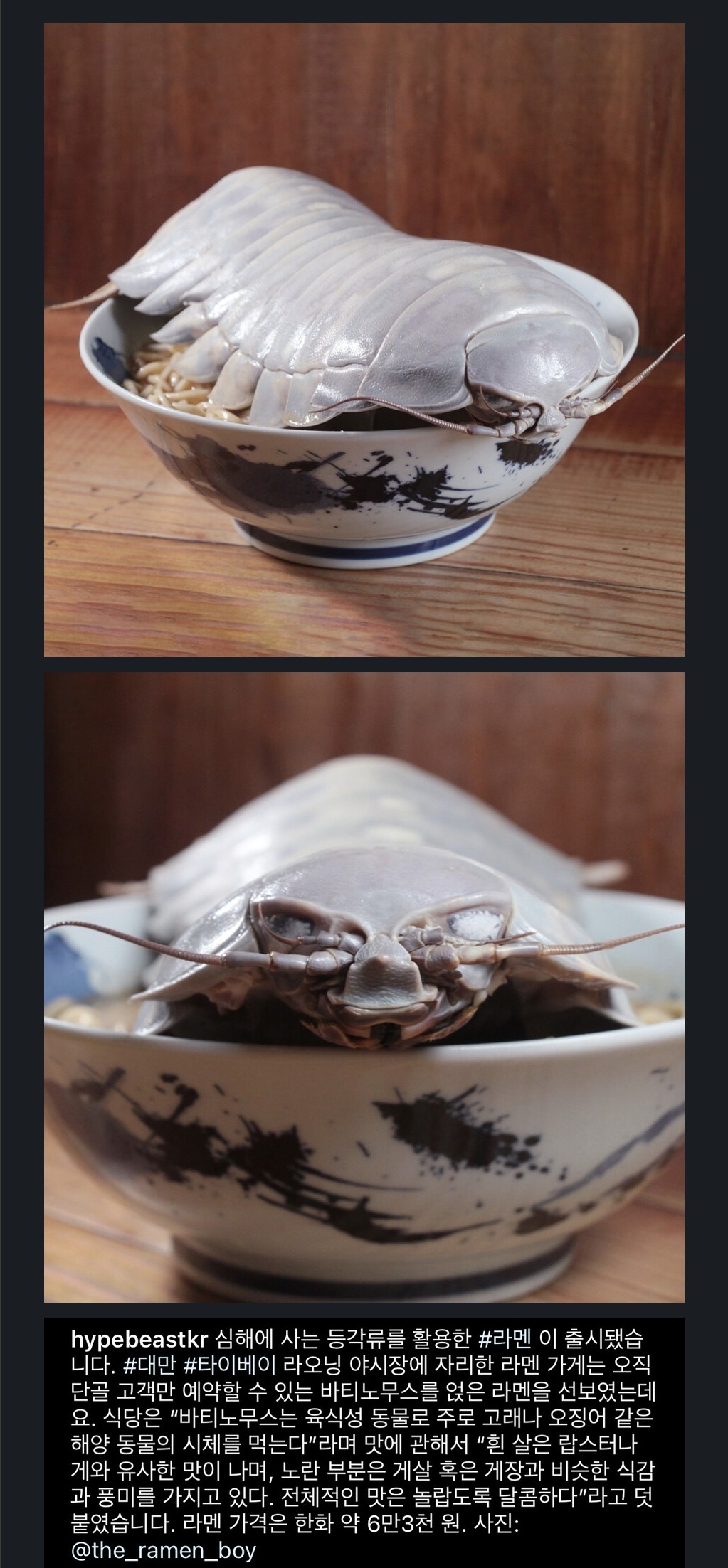 아니 이정도면 걍 새우잖아 육지벌레 고기를 보여줘야지