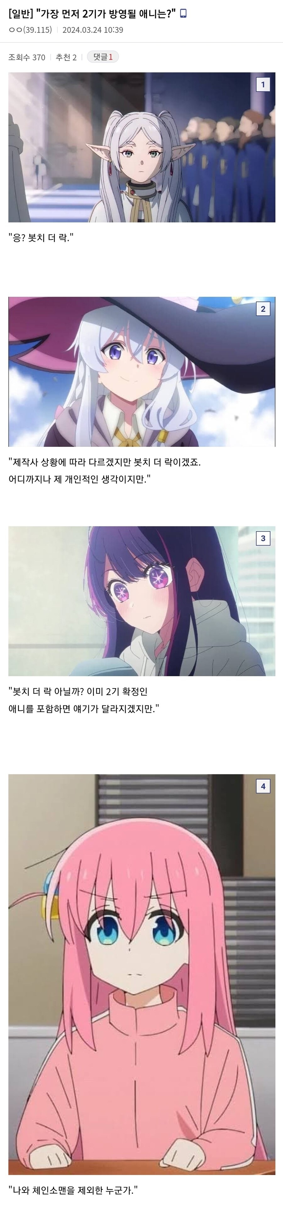체인소맨은 2기는 아니지만 극장판이라도 나오니 이제 같은 선상에 있긴 좀ㅋ | 25.01.02 18:05 | | |