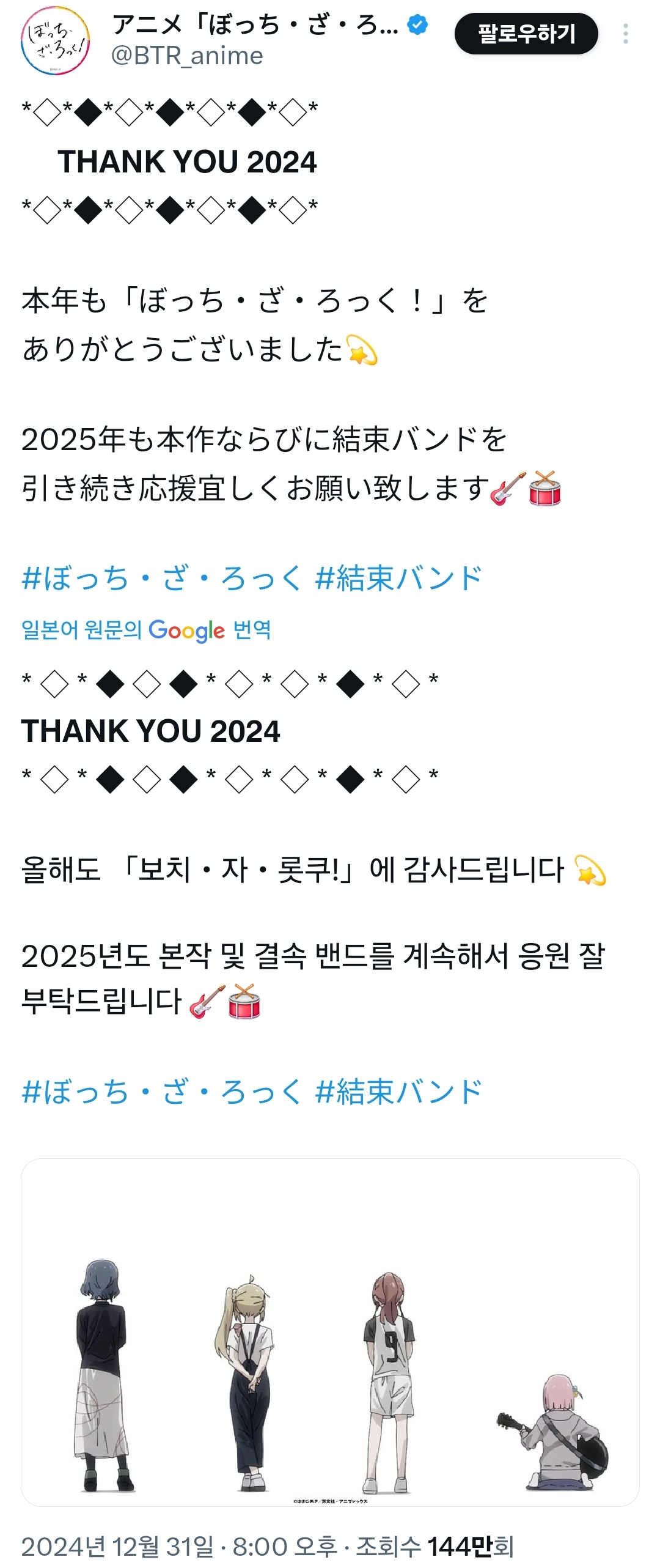 https://x.com/projecttokei/status/1874077579331985662?t=e4gK0dryT_eJZGlq0up1SA&s=19 https://x.com/BTR_anime/status/1874047856308539836?t=e4gK0dryT_eJZGlq0up1SA&s=19 | 25.01.02 17:48 | | |