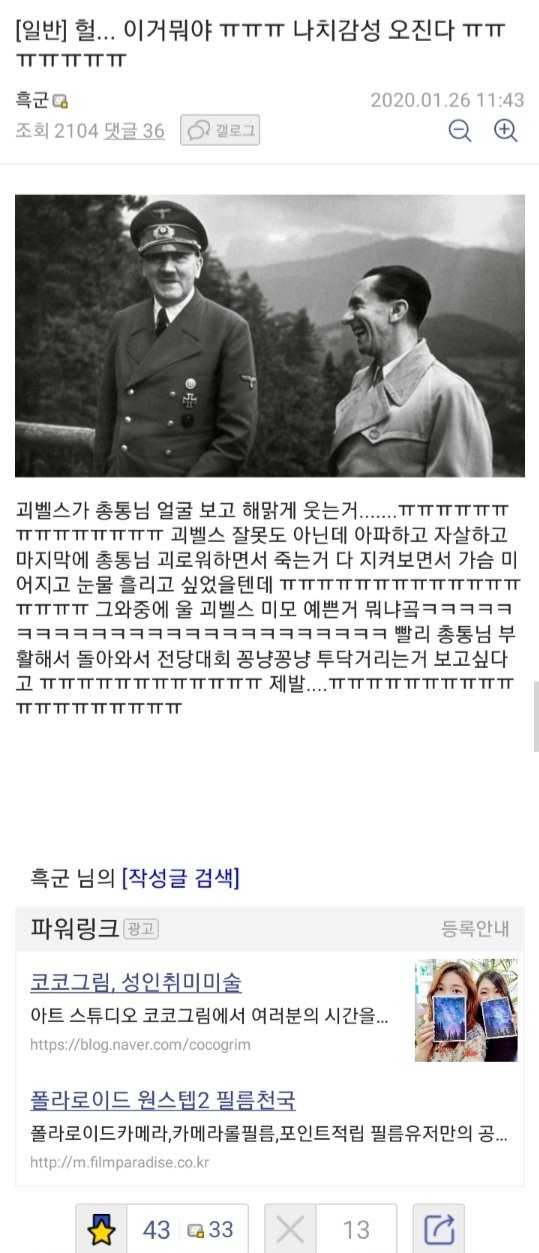 뭘 어떻게 해야 미술대학에 떨어진 일반 청년이 나치를 어떻게 만들고 지휘한건지 신기함 뭘해도 먹고 살았을거 같음 | 25.01.02 19:10 | | |
