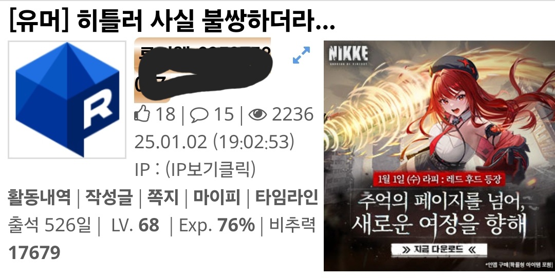 피식했으니 하루 뒤에 세시간 정도 숨 참아주세요 | 25.01.02 19:18 | | |