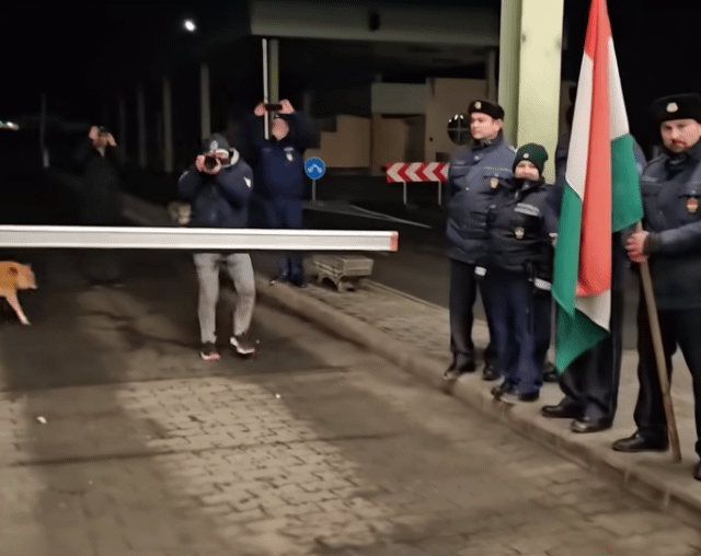헝가리-루마니아 국경인듯 헝가리는 기존 솅겐 조약 국가이고 루마니아는 가입 국가니까 한 퍼포먼스인듯