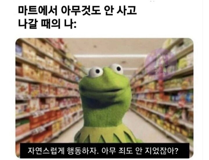 마트는 무언가를 사러 오는 곳이잖아? 그런데 아무것도 안 사고 나가는 나는 엄청 수상한게 아닐까? 혹시 누군가 내 주머니에 몰래 물건을 넣어놔서 걸리게 된다면 나는.. 나는..!!