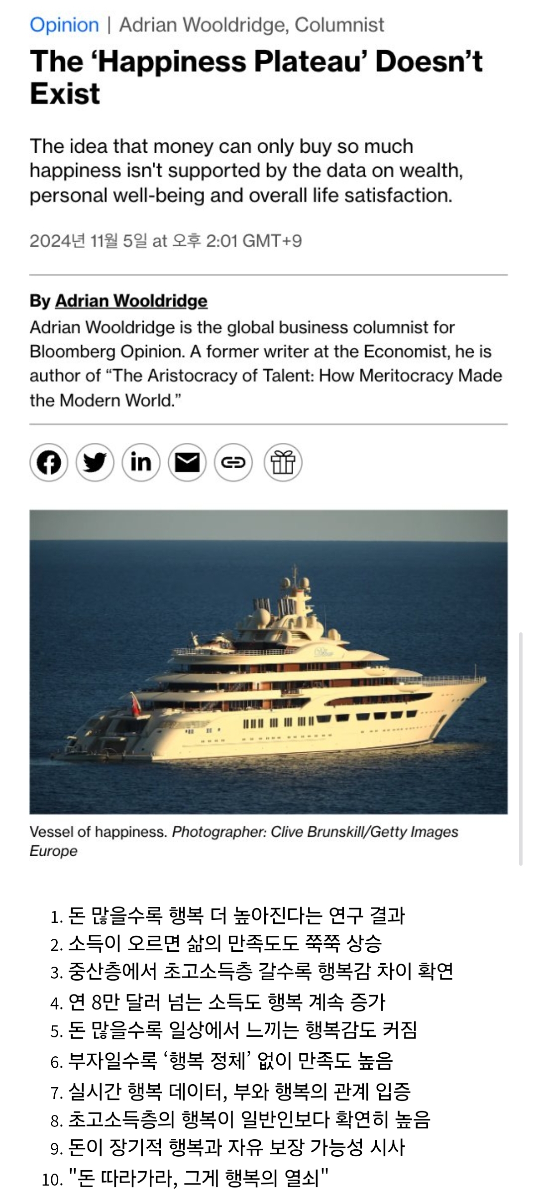 맞음 돈이 많다고 행복도도 쭉쭉 올라간다면 저건 말이 안되는 사례인거니깐... | 25.01.05 10:04 | | |