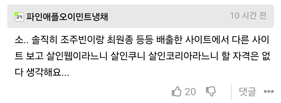 댓글에 반대 하나씩 박히는거 보니까 고소당한 디첩이 있나보네 ㅋㅋㅋㅋ | 25.01.05 15:31 | | |