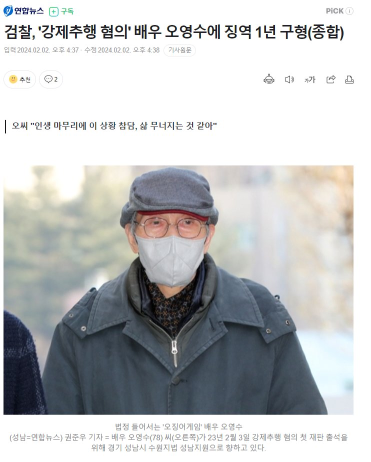 본문에서 오일남 할배 언급 하길래 성추행 관련해서 사과 하면 문제 삼지 않겠다 해서 사과 하셨다가 유죄 뜨신거임