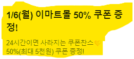 24시간이면 사라지는 쿠폰찬스 50% 쿠폰증정!~~~~ (한참뒤에)(최대5천원) 하던걸 두둘겨 패서 저 옆에 붙인게 아닐까