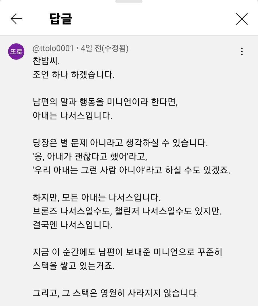 그때 아내가 임신한 상태였던가 | 25.01.06 12:53 | | |