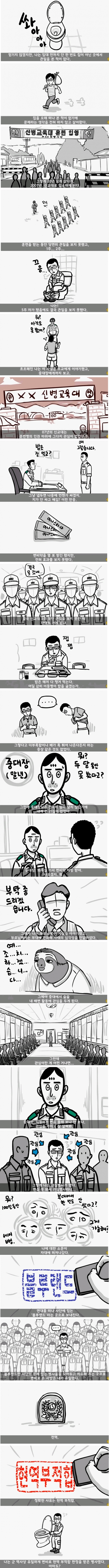 몇달동안있으면서 똥싼게 관장한 2번이 끝이라더라..지금도 프라이빗한데서밖에 못싼다는듯