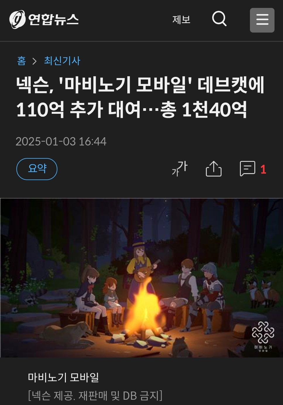 한국 언론 아니더라도 마비M은 매번 언제 낸다 언제 낸다 말만했죠ㅋㅋ 근데 이번에는 넥슨쪽에서 최후통첩급이라서 미완이라도 나오지 않을까 싶네요 | 25.01.09 09:16 | | |