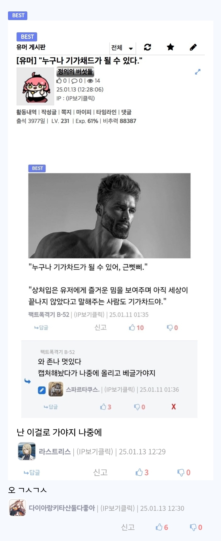 기가차드는 언제나 너였어 앞으로도 항상 그럴 거야