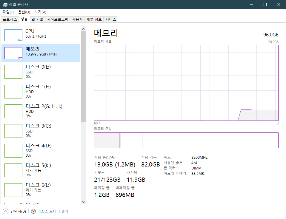 역시 개인용 PC는 256GB 워크스테이션은 2테라를 램으로 써야 넉넉한 시대군