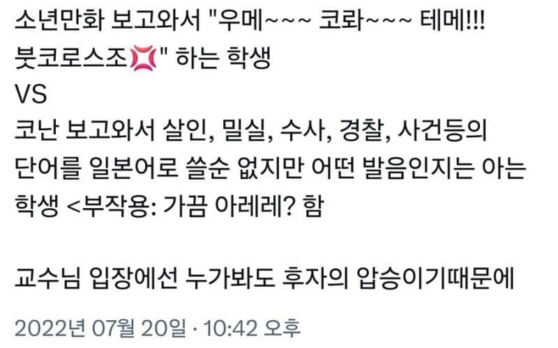 학원 가거나 어플 깔거나 동영상 강의를 봐야지 이상한 말투의 주인공 따라하면 저새끼 뭐지? 한다구 예시로 용과 같이로 일어 배우면 저새끼 뭐지? 야쿠자야? 아니면 미친 놈인가? 한다구 | 25.01.14 11:13 | | |