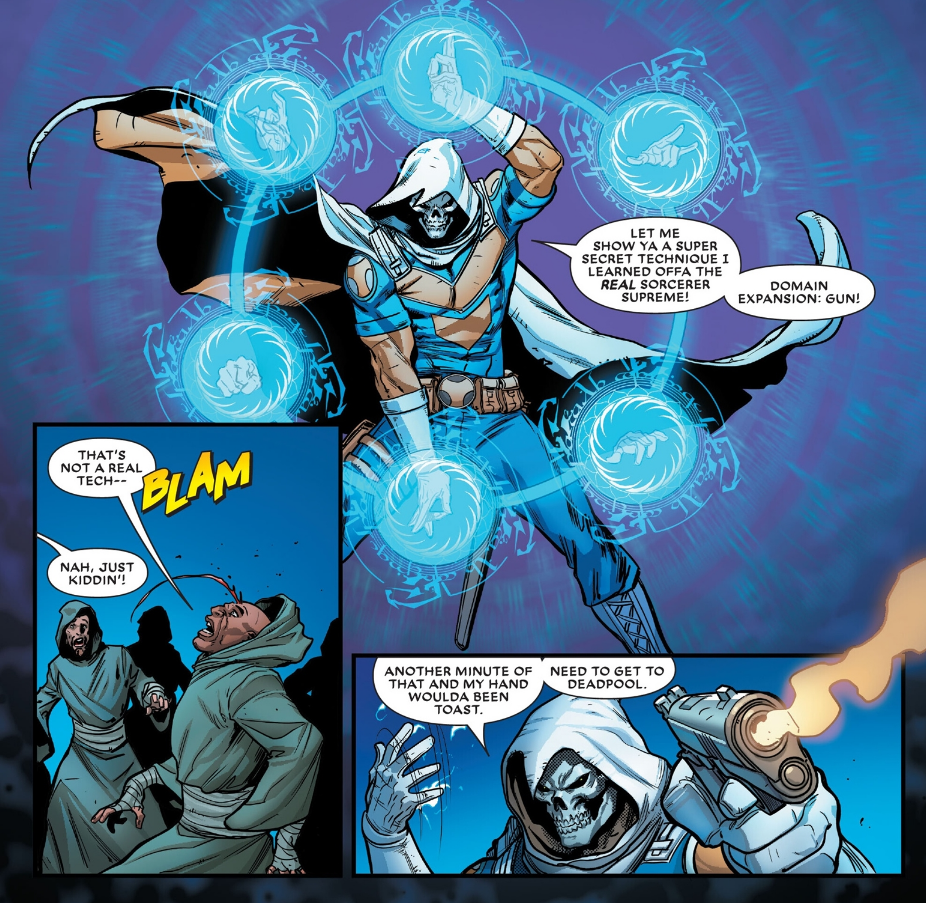데드풀 만화책에서 영역전개가 나온 건 맞는데 데드풀이 아니라 태스크마스터가 '영역전개:총' 드립 침 https://www.reddit.com/r/comicbooks/comments/1ey1gn3/solooks_like_taskmaster_is_a_jjk_fan_deadpool/ | 25.01.14 18:24 | | |