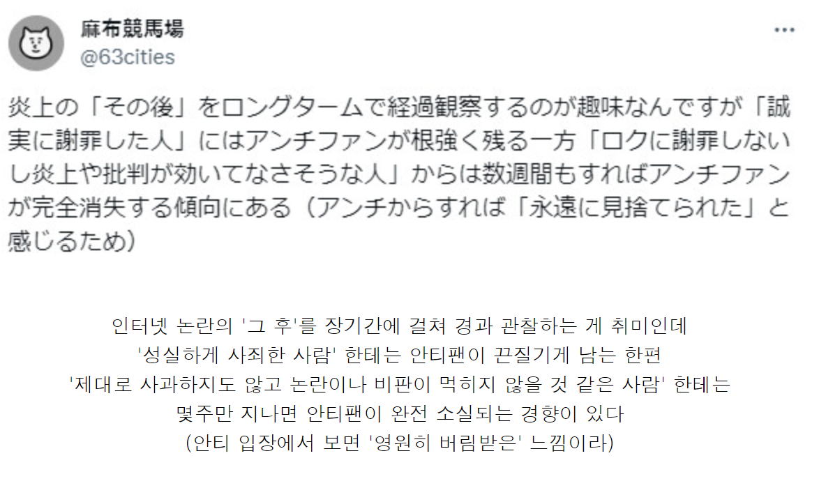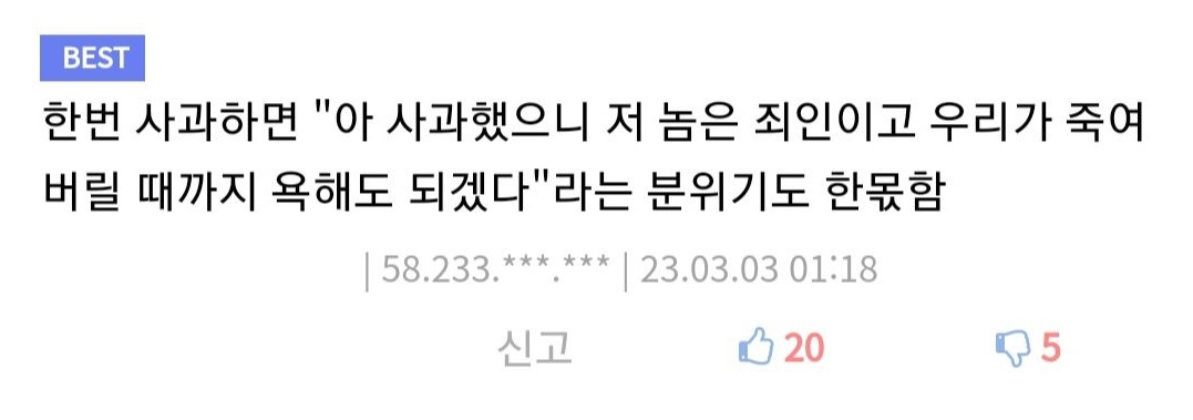 사람이 실수할수도있지 하던쪽도 돌아서버릴가능성이 없진않지 저랬을 때 | 25.01.14 21:50 | | |