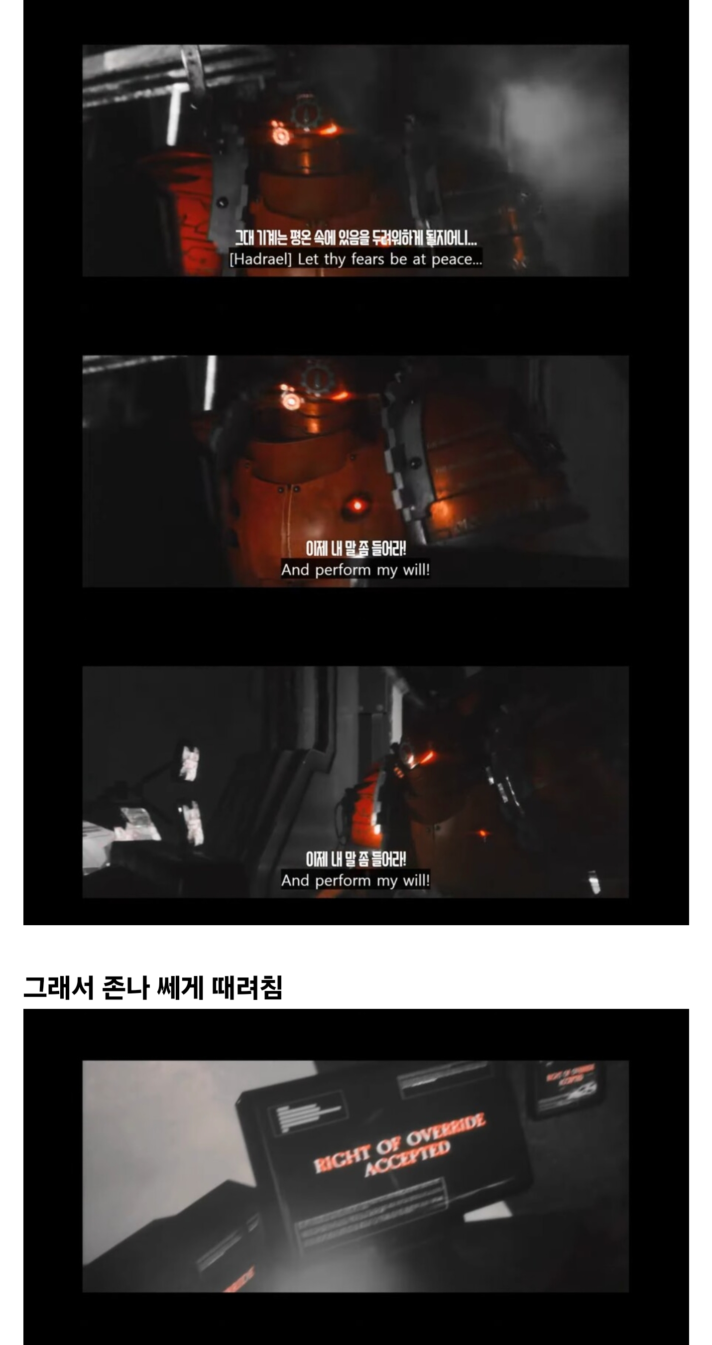 심지어 헤러시 기간 동안 충성파 쪽은 팀킬, 자폭 등등등 온갖 사건사고 빈도가 증가한 반면. 반역파 쪽에선 문제 하나 없이 정상 작동해서 헤러시 이후에 인류제국에선 죄다 퇴출