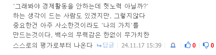할일 이라는건 소일거리 말함. 진짜 택도 없는 일 한 두개 하는거 | 25.01.15 22:18 | | |